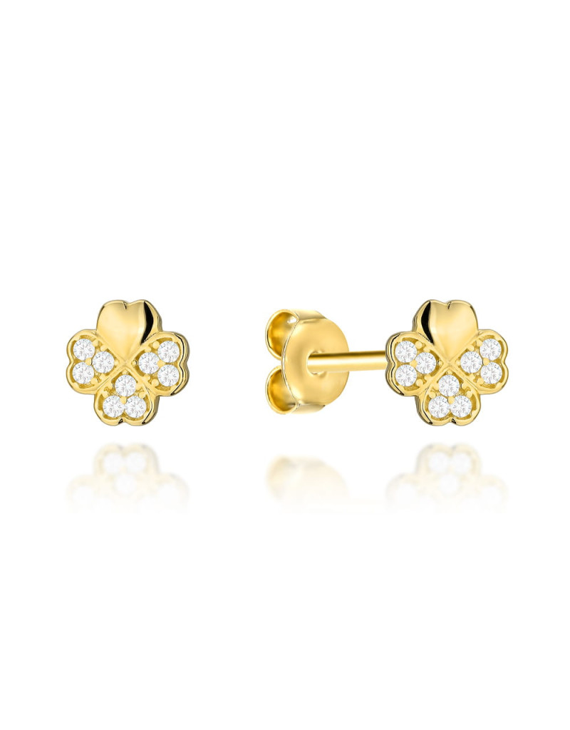 Kolczyki złote koniczynka z cyrkoniami na sztyfcie (Gramatura: 0.91)