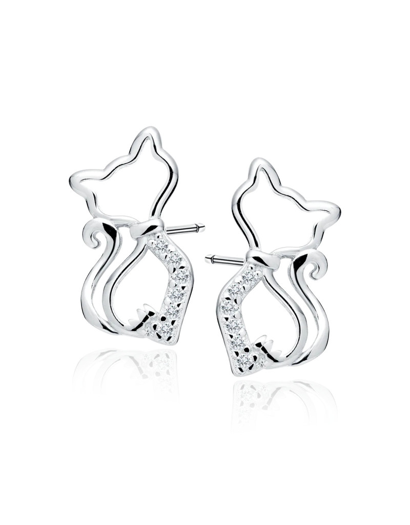 Srebrne kolczyki pr.925 kot z białymi cyrkoniami