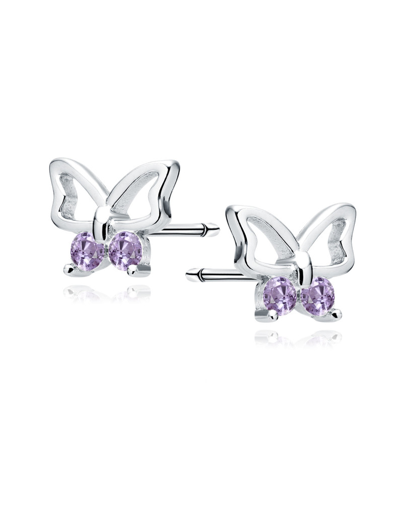 Srebrne kolczyki pr.925 motyl z fioletowymi cyrkoniami