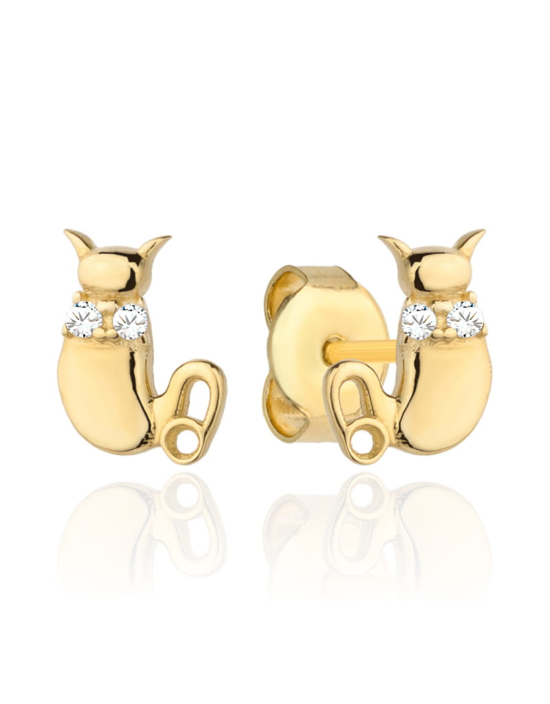 Kolczyki złote kotki i dwie cyrkonie (Gramatura: 0.73)