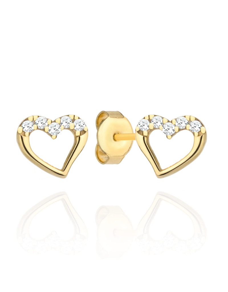 Kolczyki złote serca i cyrkonie na górze (Gramatura: 1.00)