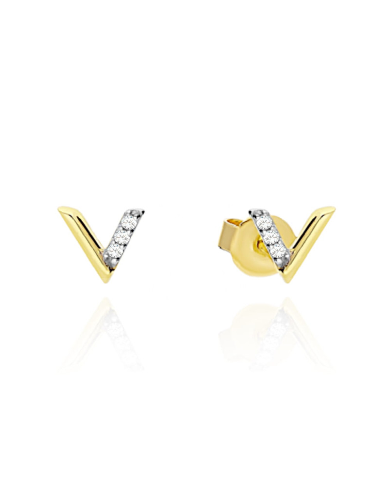 Kolczyki złote literka v z cyrkoniami (Gramatura: 0.71)