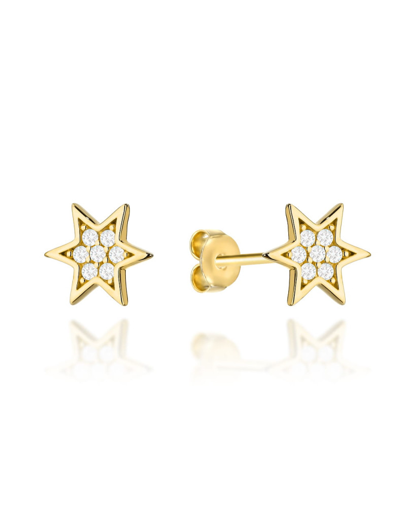 Kolczyki złote gwiazdki z cyrkoniami to elegancka biżuteria, która doda blasku każdej stylizacji. Wykonane z wysokiej jakości złota próby 585, te urocze kolczyki są idealnym wyborem na prezent lub jako ozdoba na wyjątkowe okazje.