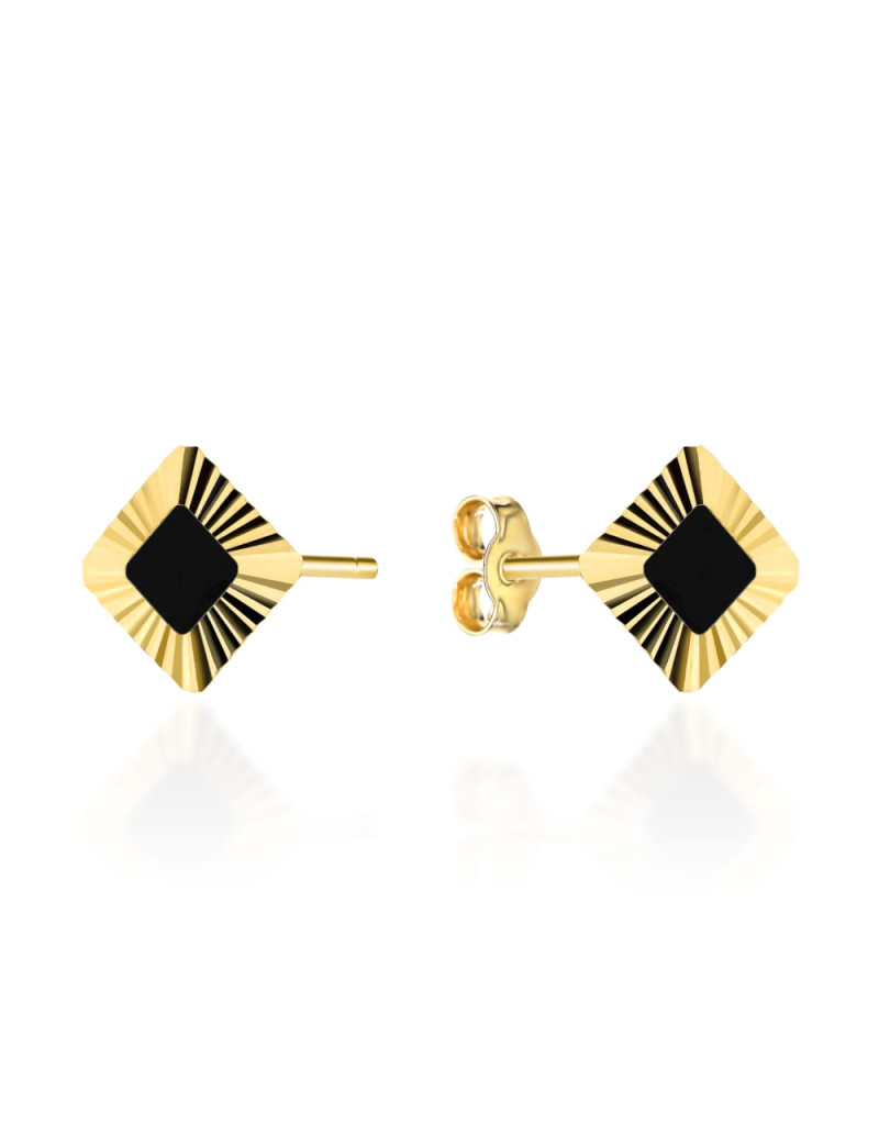 Niech te złote kolczyki romby z czarnym kamieniem staną się wyjątkowym dodatkiem w Twojej kolekcji biżuterii!