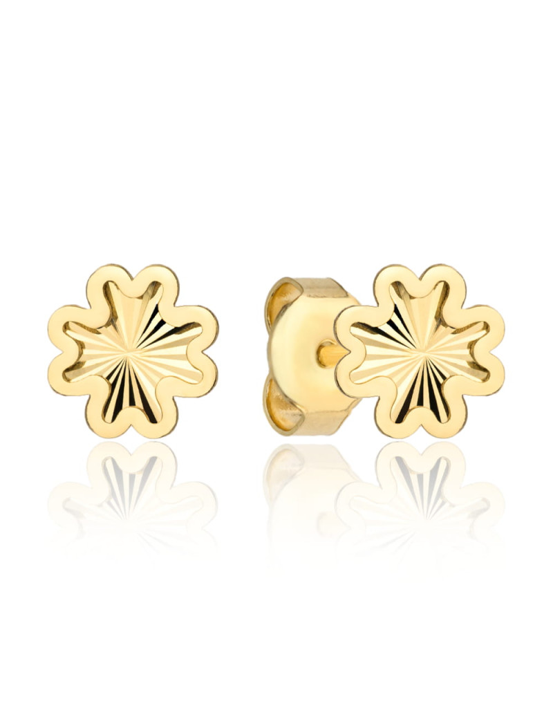 Kolczyki złote diamentowane koniczynki w gładkiej oprawie (Gramatura: 0.84)