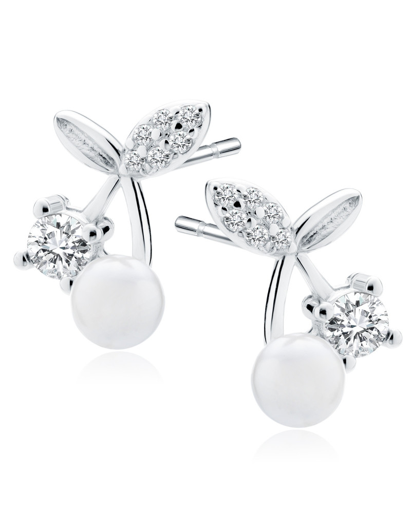 Srebrne kolczyki pr.925 wisienka z białymi cyrkoniami i perłą