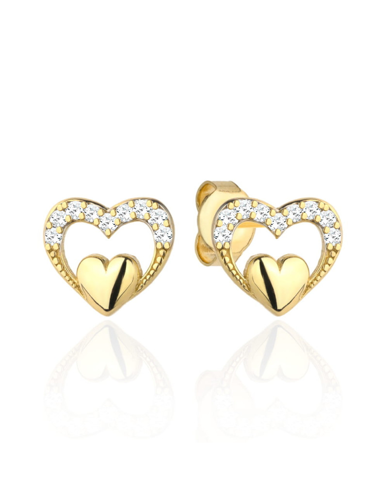 Kolczyki złote gładkie serduszko w sercu z cyrkonii (Gramatura: 1.02)