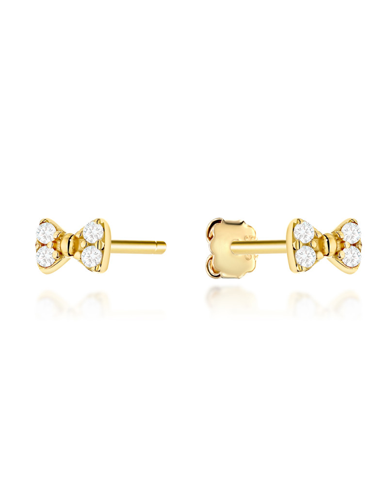 Kolczyki złote kokardki zdobione cyrkoniami na sztyfcie (Gramatura: 0.67)