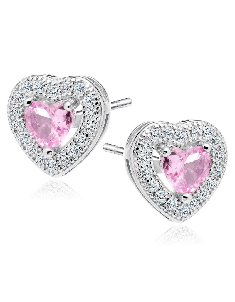 Srebrne kolczyki pr. 925 Cyrkonia różowa - serca