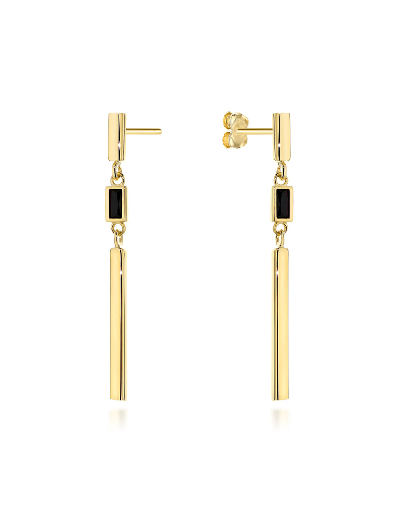 Kolczyki złote wiszące pałeczki z czarnym kamieniem (Gramatura: 1.29)