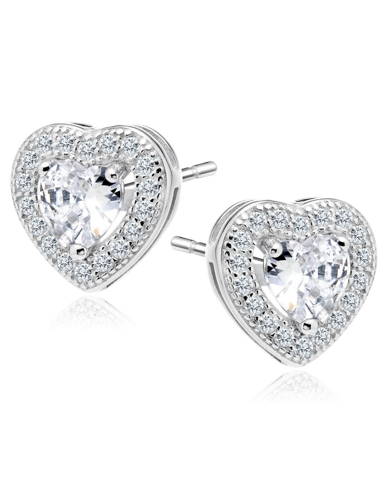 Srebrne kolczyki pr. 925 Cyrkonia biała - serca