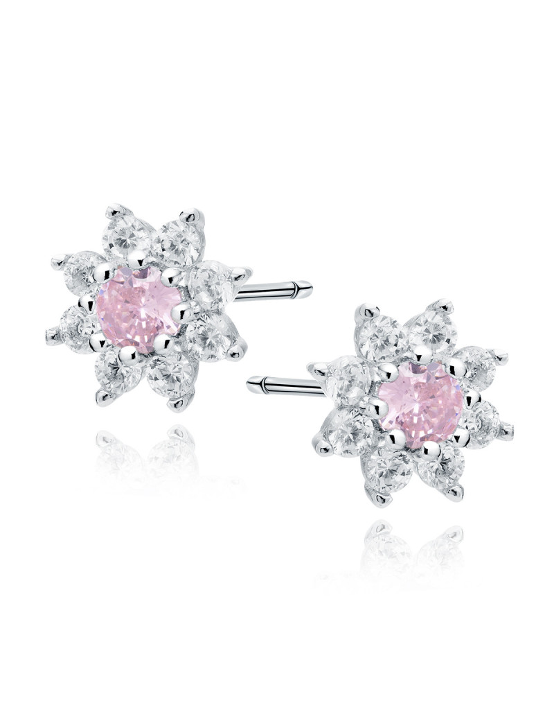 Srebrne kolczyki pr.925 kwiatek z różową cyrkonią