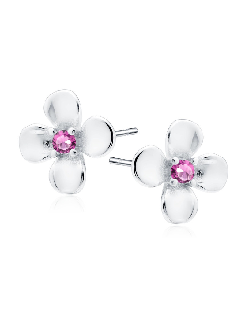 Srebrne kolczyki pr.925 kwiatki z różową cyrkonią