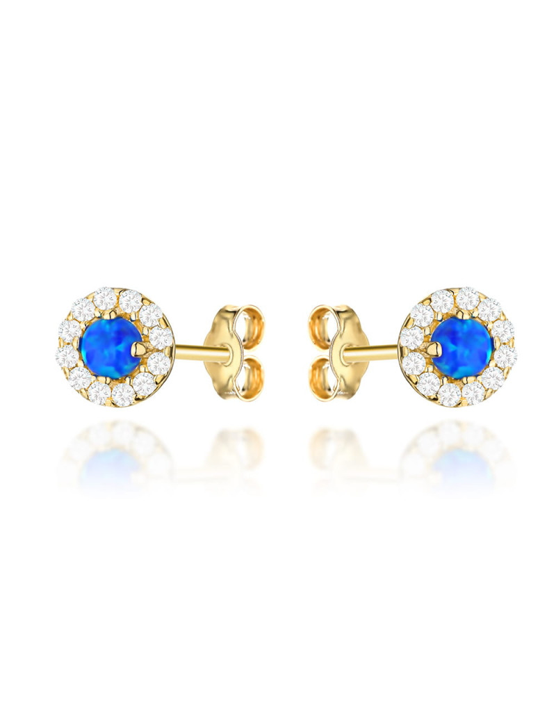 Kolczyki złote kółeczka z cyrkoniami i kamień opalit (Gramatura: 1.04)