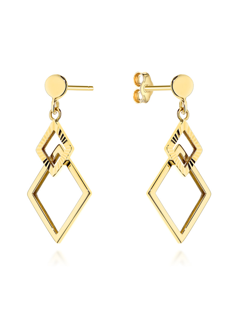 Kolczyki złote wiszące romby zdobione diamentowaniem (Gramatura: 2.25)