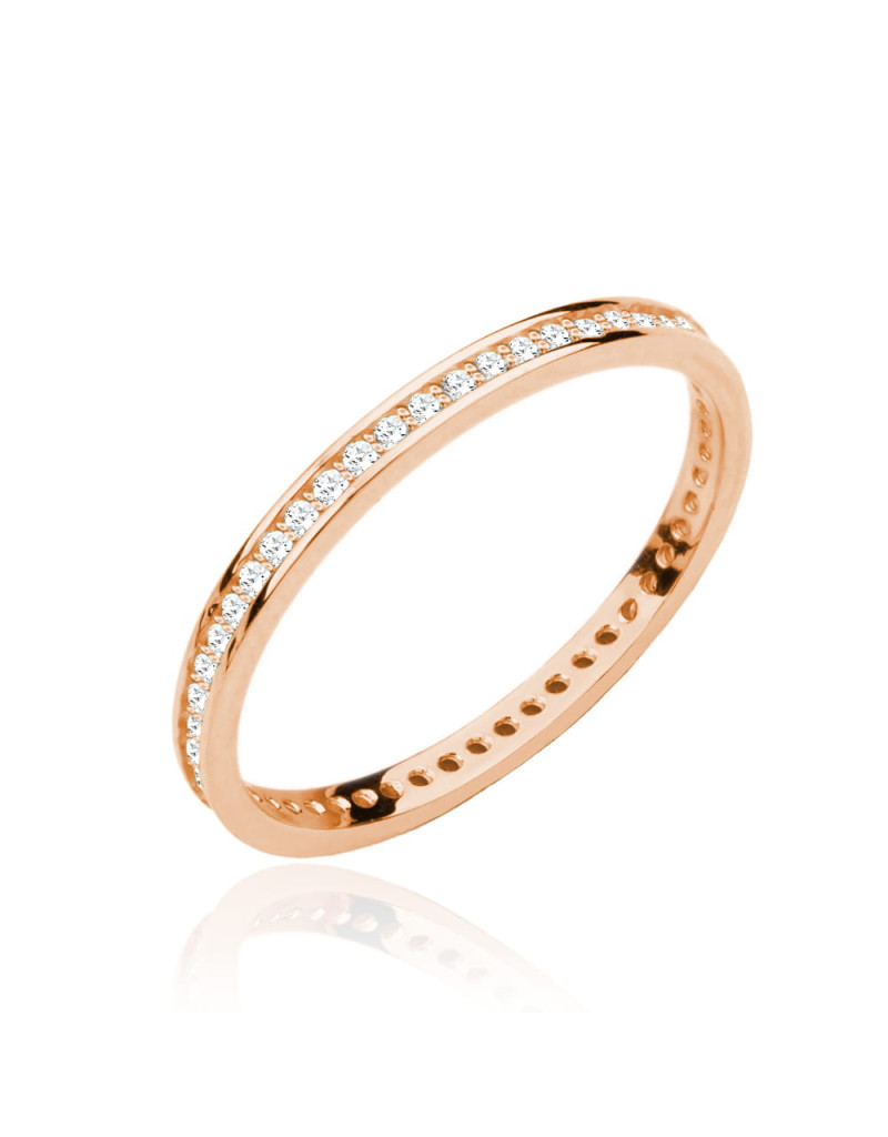 Pierścionek złoty jednorzędówka wysadzana cyrkoniami - różowe złoto (Rozmiar pr. 585: 11 Gramatura: 1.18)