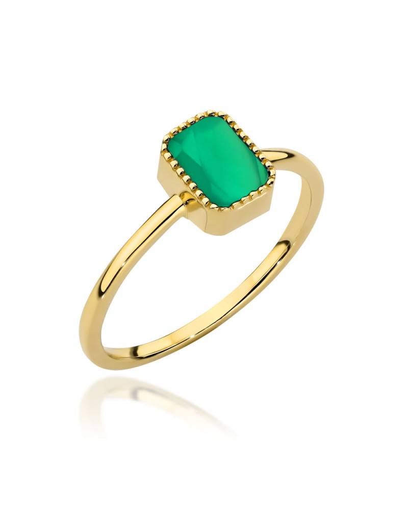 Pierścionek złoty prostokąt z zielonym agatem (Rozmiar pr. 585: 12 Gramatura: 2.15)