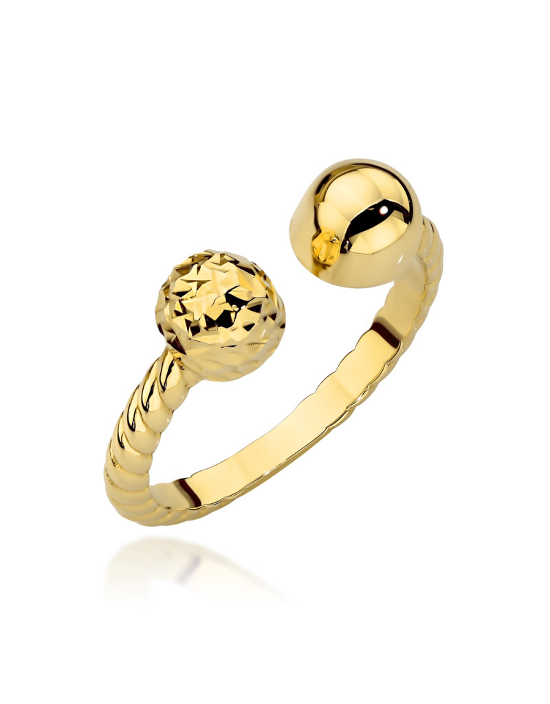 Pierścionek złoty pleciony z gładką i diamentowaną kulką (Rozmiar pr. 585: 12 Gramatura: 2.37)