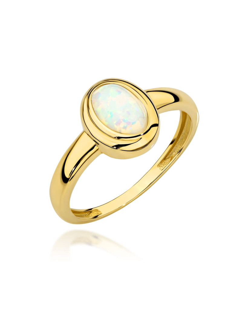 Pierścionek złoty owalny opal w gładkiej oprawie (Rozmiar pr. 585: 17 Gramatura: 1.62)
