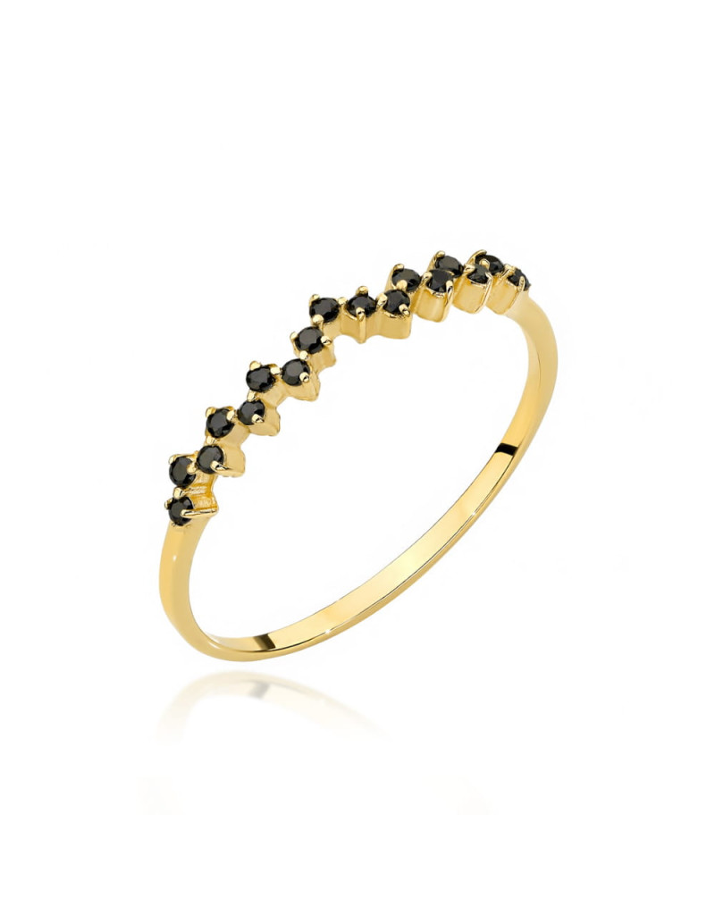 Pierścionek złoty oprawiony czarnymi cyrkoniami (Rozmiar pr. 585: 15 Gramatura: 1.11)