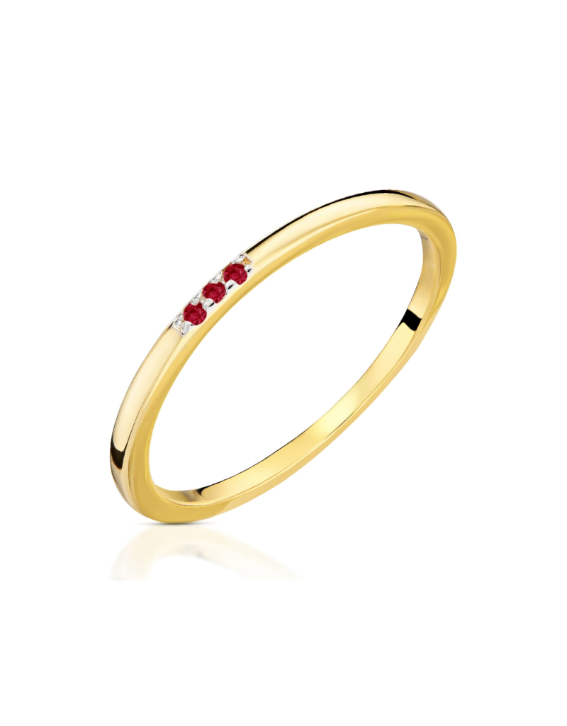 Pierścionek z trzema małymi rubinami w rzędzie to elegancka biżuteria, która doda blasku każdej stylizacji. Wykonany z wysokiej jakości złota próby 585, ten wyjątkowy pierścionek łączy w sobie klasykę i nowoczesność.