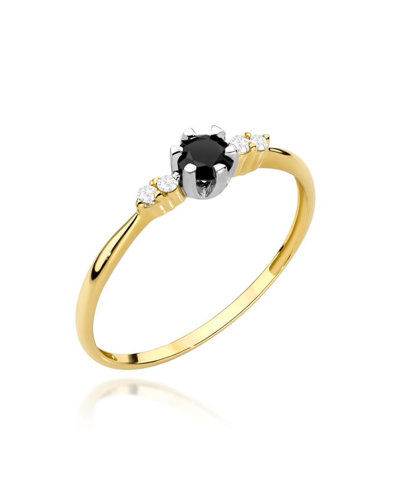 Pierścionek złoty z centralnym czarnym kamieniem i subtelnym zdobieniem (Rozmiar pr. 585: 19 Gramatura: 1.12)