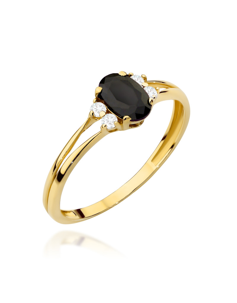 Pierścionek złoty z czarnym kamieniem zdobiony cyrkoniami (Rozmiar pr. 585: 17 Gramatura: 1.18)