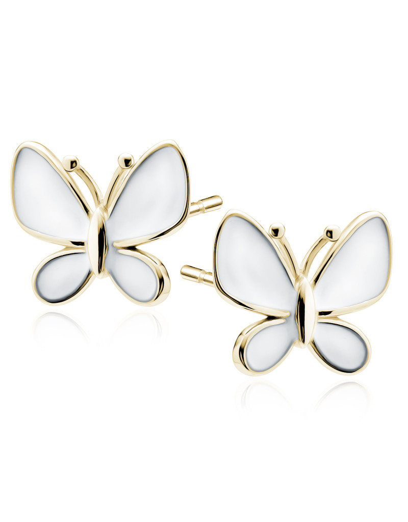 Srebrne pozłacane kolczyki pr.925 białe emaliowane motylki