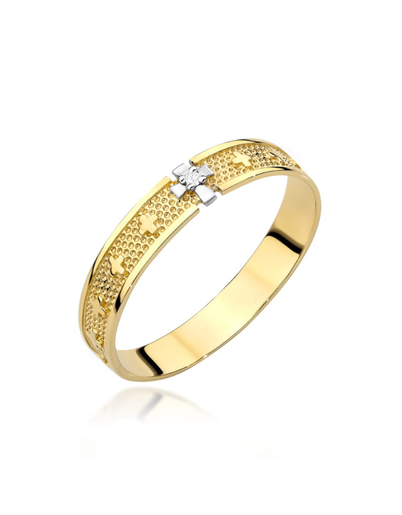 Pierścionek złoty różaniec z krzyżem w białym złocie i cyrkonią (Rozmiar: 16 pr. 585 Gramatura: 1.60)