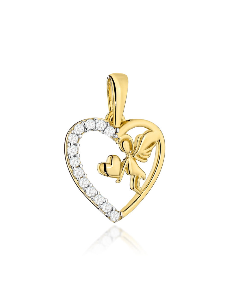 Zawieszka złota serce z Aniołkiem i cyrkonie (Gramatura: 0.72)