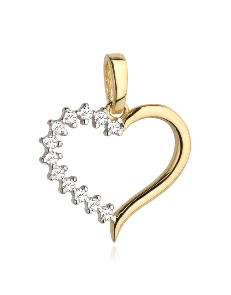 Zawieszka złoty kontur serca w połowie wysadzany cyrkoniami (Gramatura: 0.79)