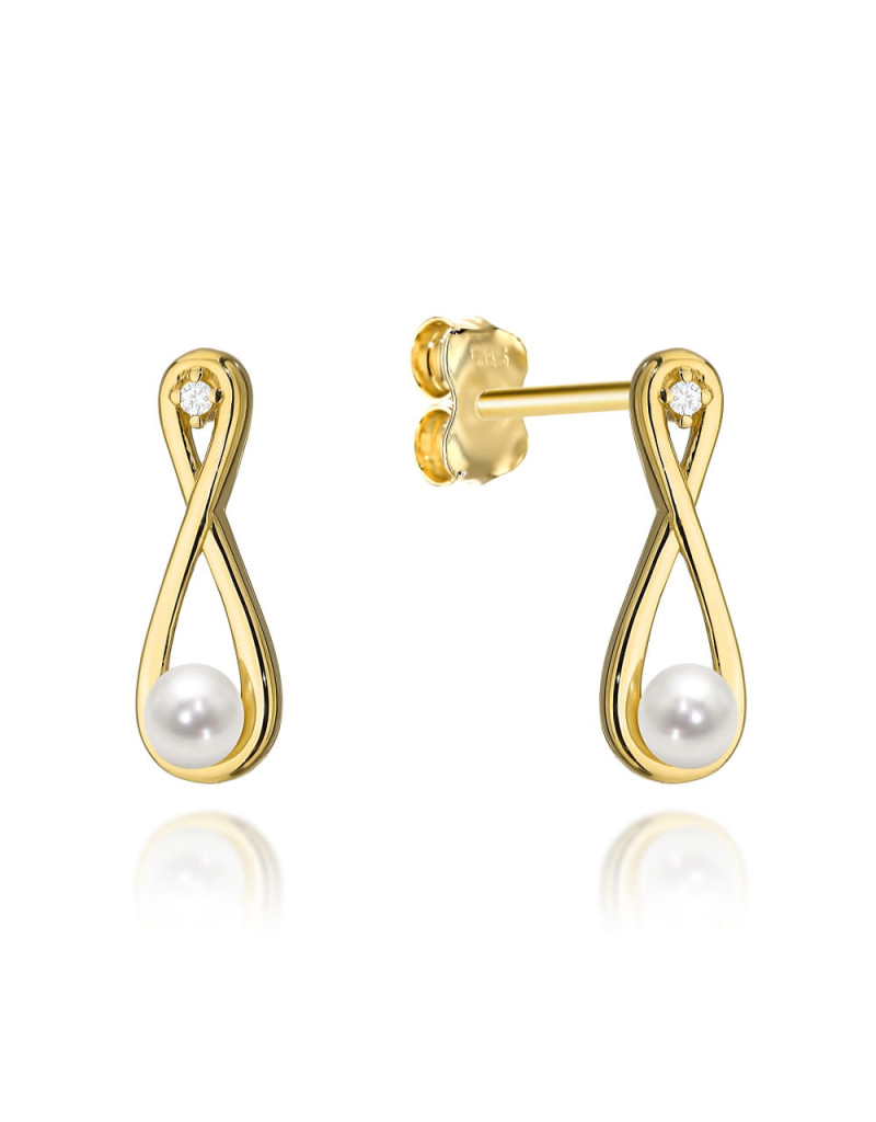 Kolczyki złote znak nieskończoności z perełką i cyrkonią (Gramatura: 1.26)