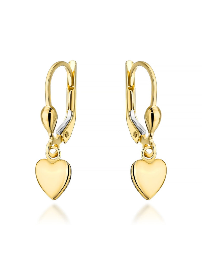 Kolczyki złote wiszące serca na angielskim zapięciu (Gramatura: 1.56)