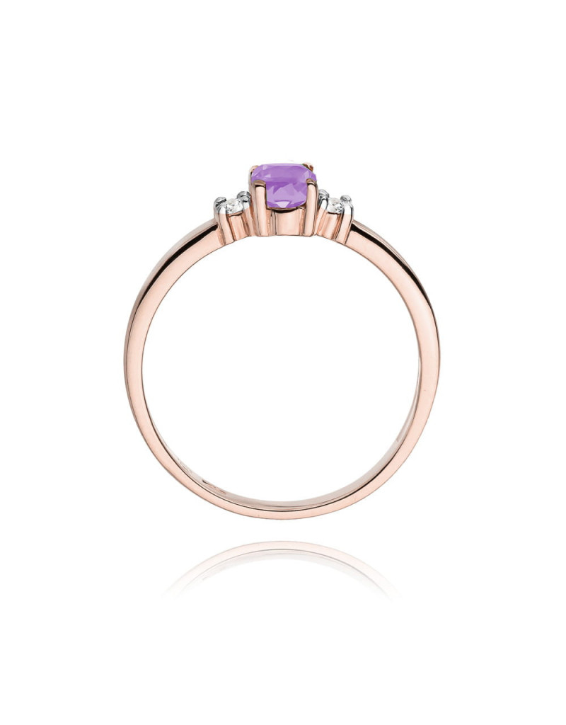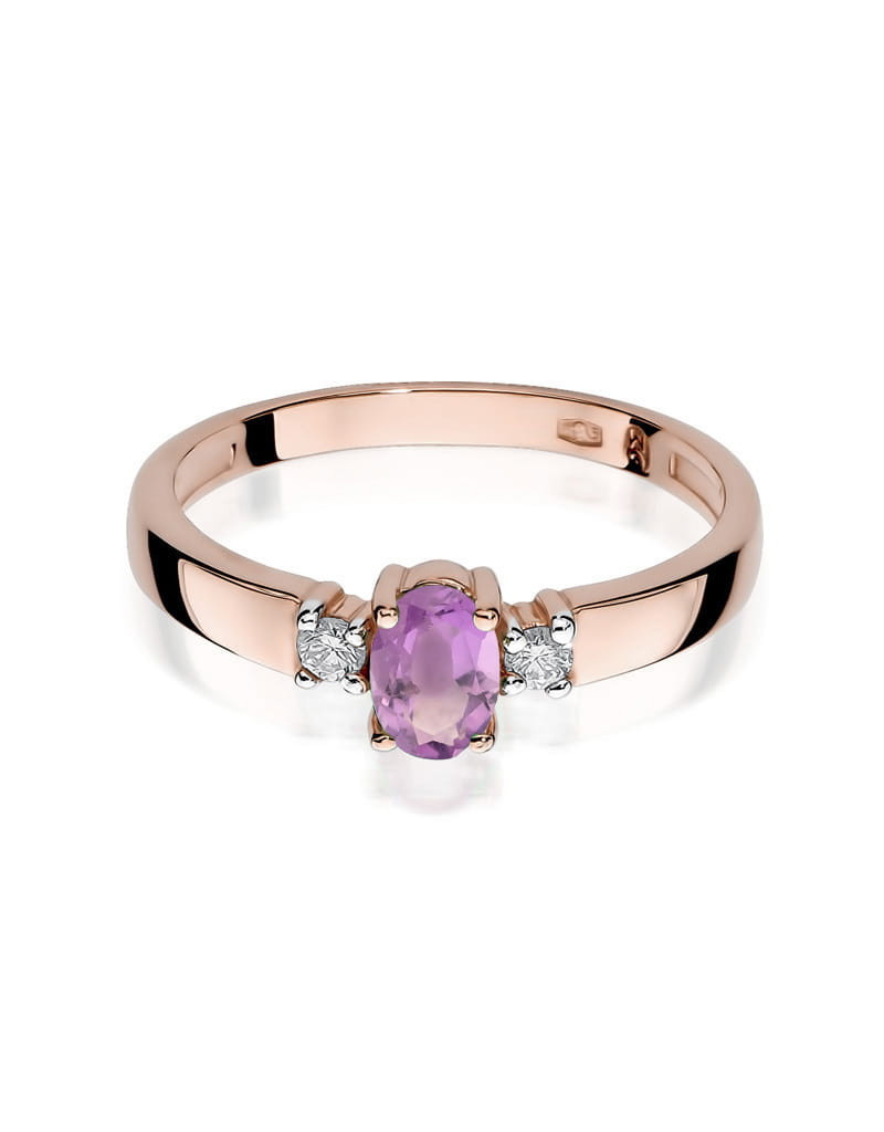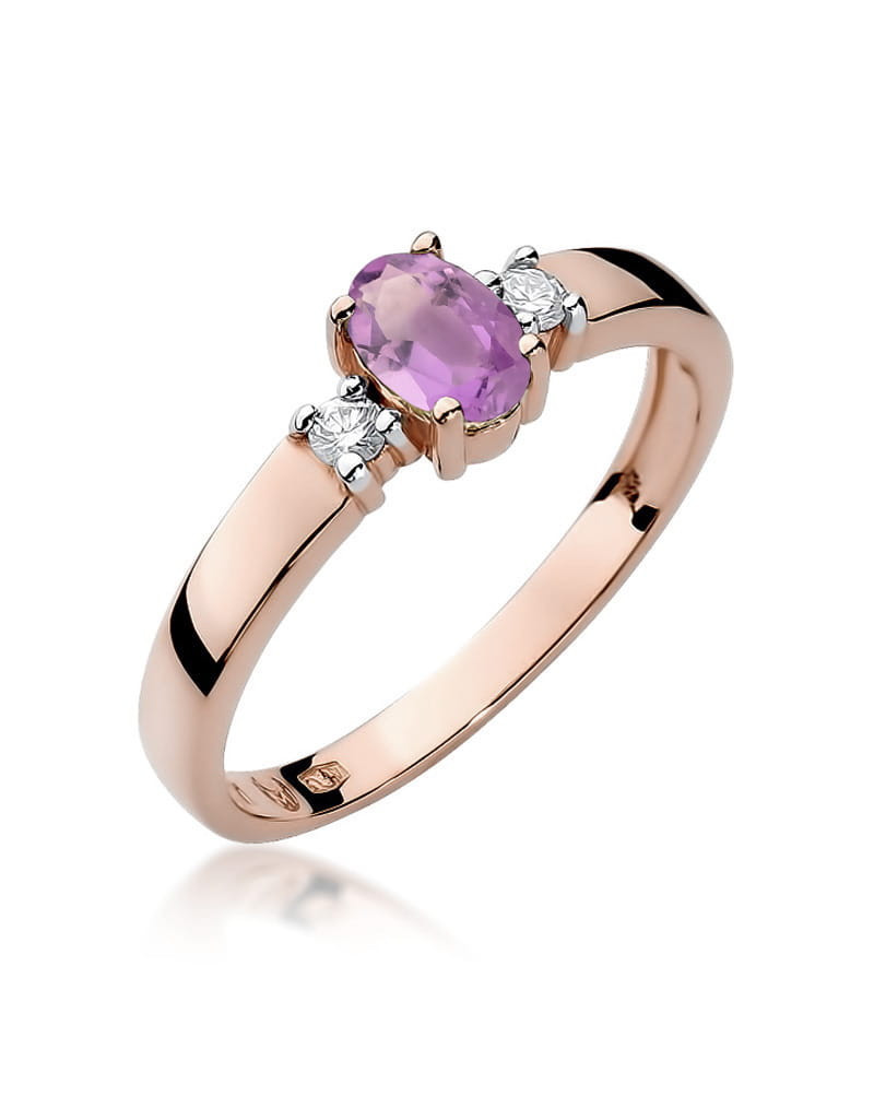 Czarujący pierścionek z różowego złota ze zjawiskowym ametystem i 2 brylantami.