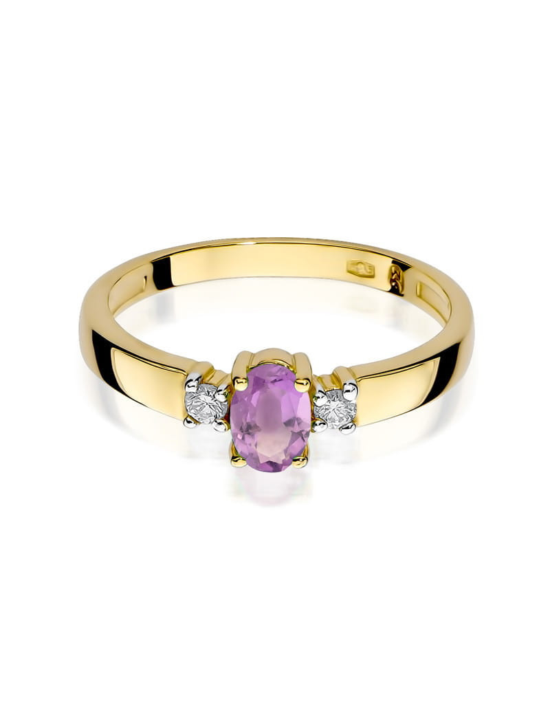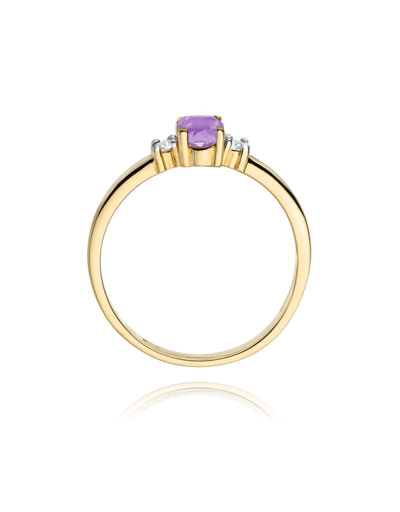Czarujący pierścionek z żółtego złota ze zjawiskowym ametystem i 2 brylantami.