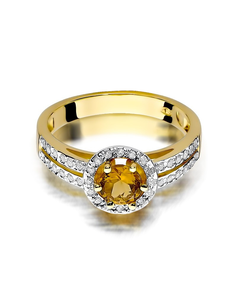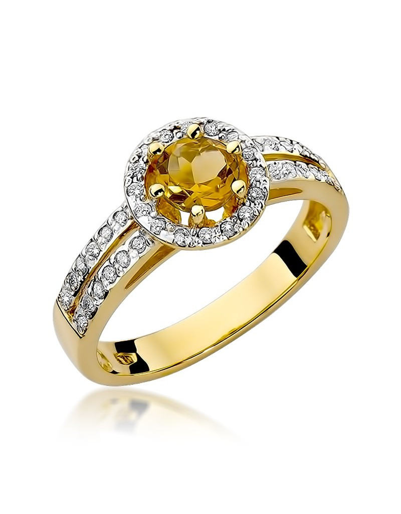 Urzekający złoty pierścionek z doskonałym połączeniem niesamowitego cytrynu z lśniącymi brylantami.