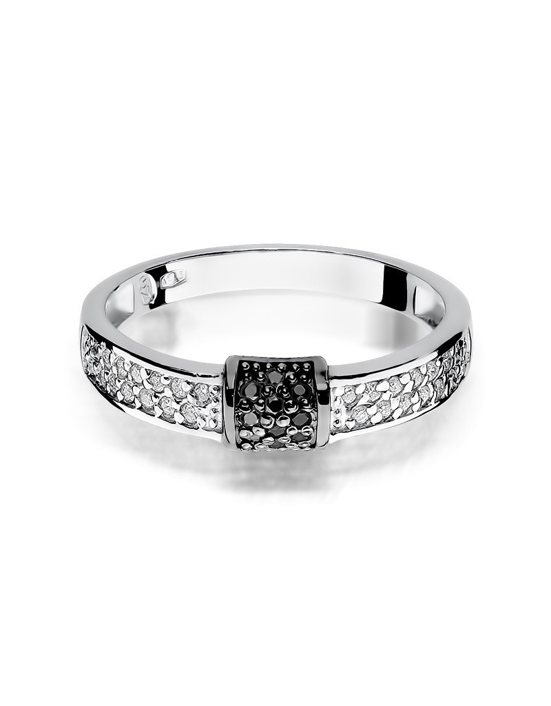 Ponadczasowy wzór pierścionka z białymi i czarnymi brylantami, które nadają mu wyjątkowy charakter.
