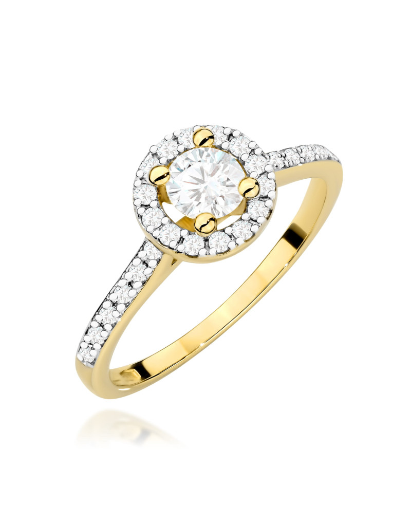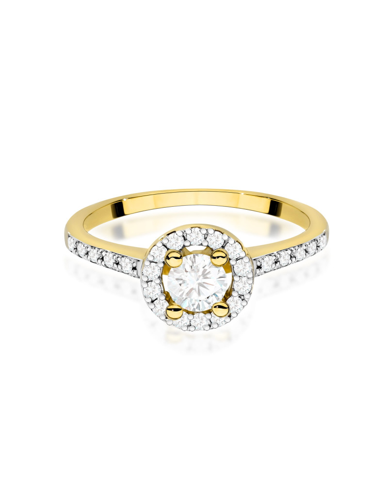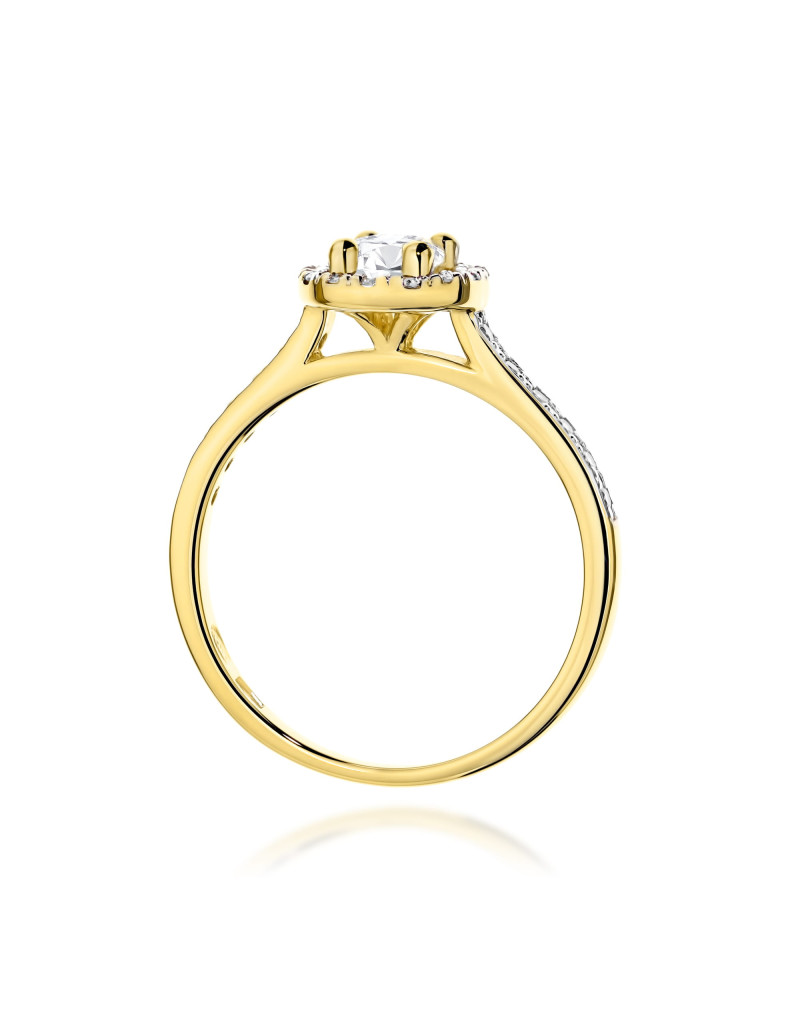 Pierścionek z brylantami laboratoryjnymi w żółtym złocie, niepowtarzalny i nowoczesny wzór, idealnie pasuje na delikatną kobiecą dłoń.