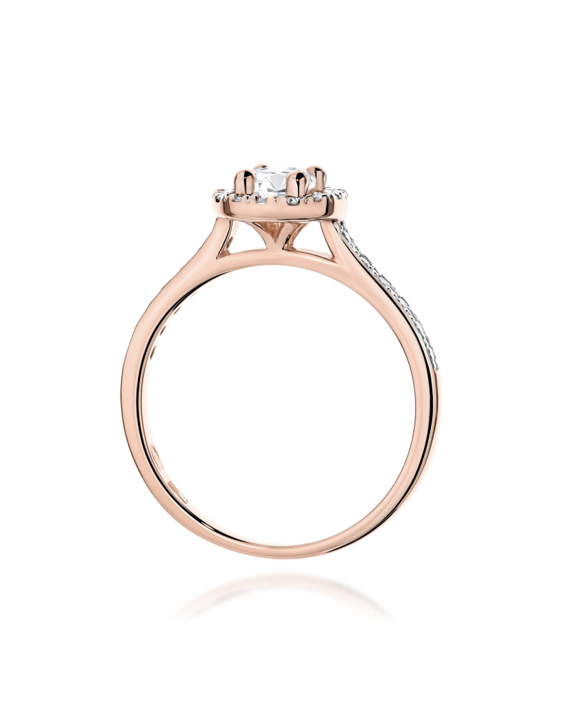 Pierścionek z brylantami laboratoryjnymi w różowym złocie, niepowtarzalny i nowoczesny wzór, idealnie pasuje na delikatną kobiecą dłoń.