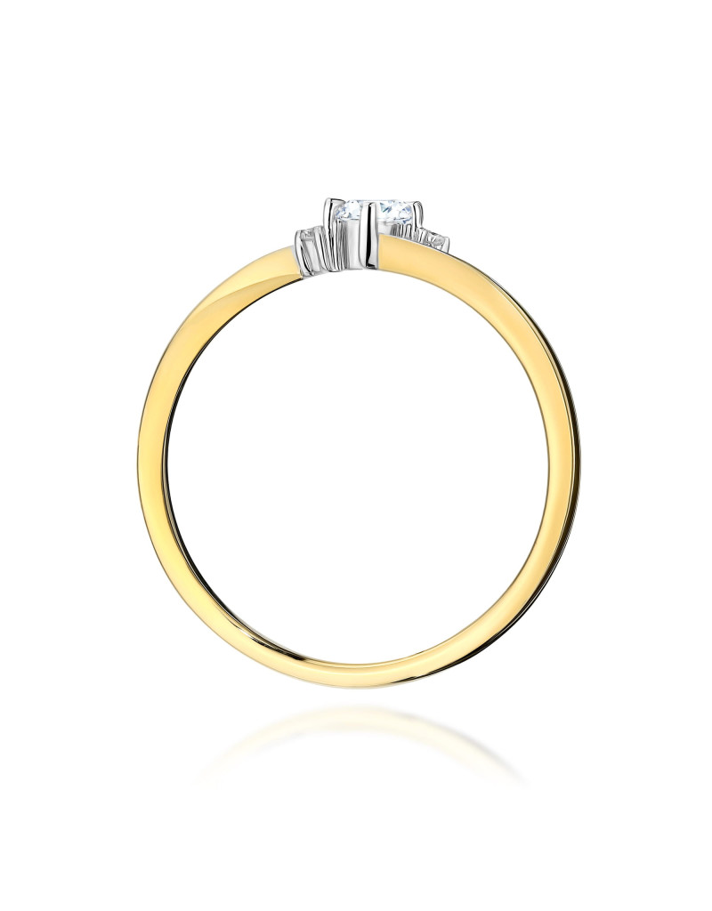 Elegancki i subtelny złoty pierścionek z wygiętą szyną którą ozdabiają olśniewające brylanty laboratoryjne.