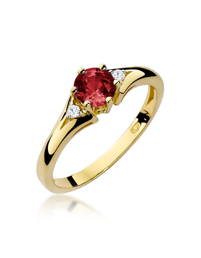 Wyjątkowy złoty pierścionek z urodziwym granatem i brylantami stanowiący idealną biżuterię dla każdej kobiety.