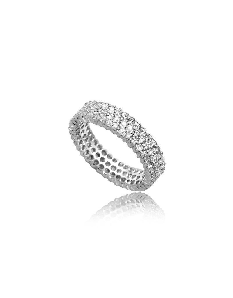 Niezwykły złoty pierścionek szeroki, zdobiony na całości cyrkoniami.