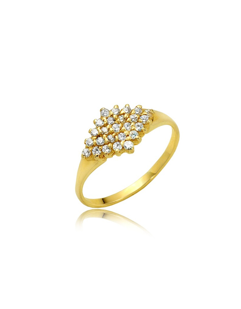 Fascynujący złoty pierścionek z pięknie osadzonymi cyrkoniami.