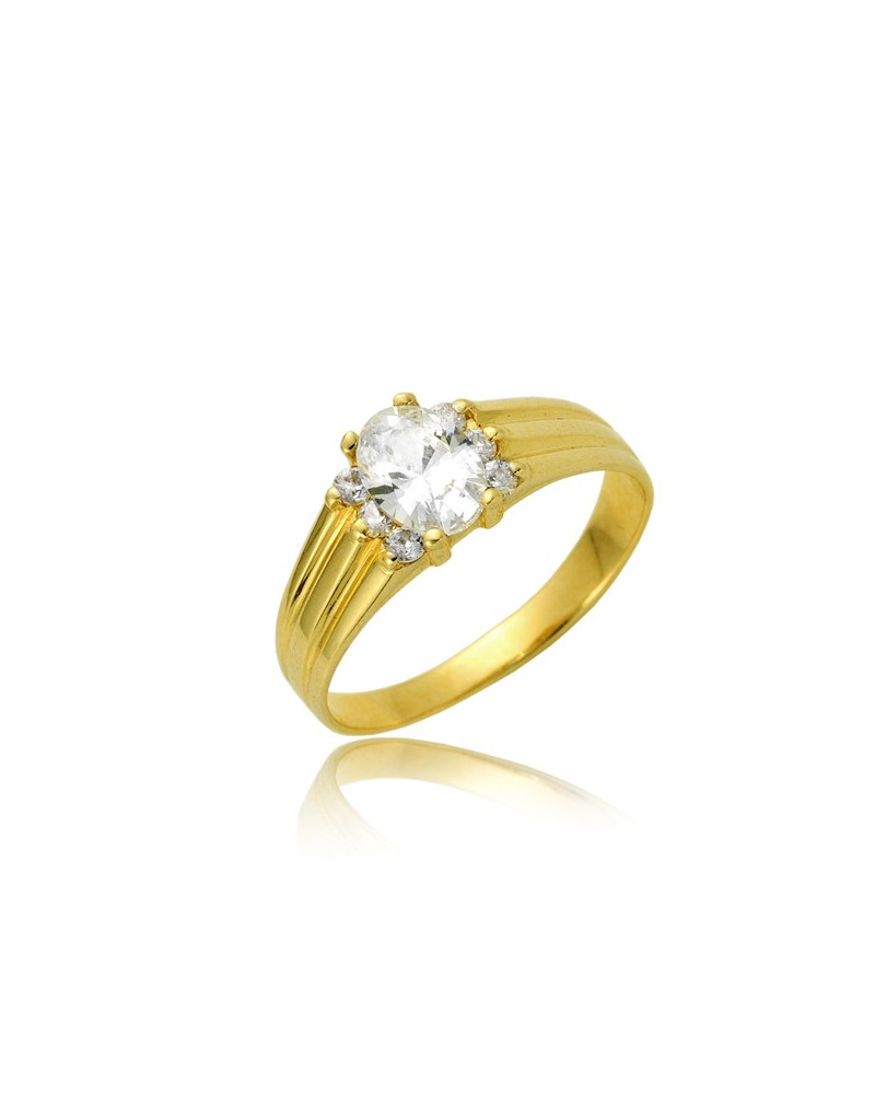 Piękny złoty pierścionek z w klasycznym stylu z duża owalną cyrkonią.