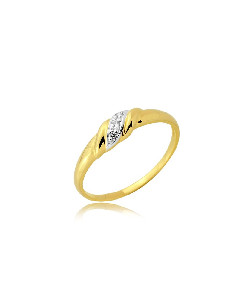 Piękny złoty pierścionek o unikalnym stylu z cyrkonią.