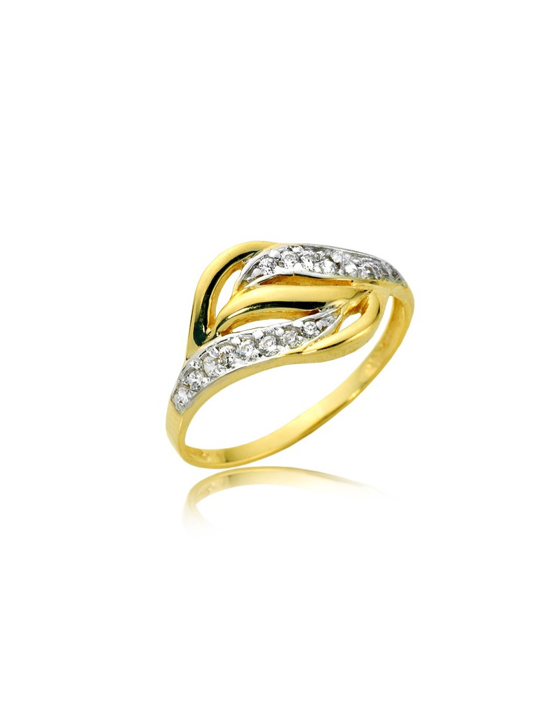 Elegancki złoty pierścionek w niezwykły sposób zdobiony małymi cyrkoniami.