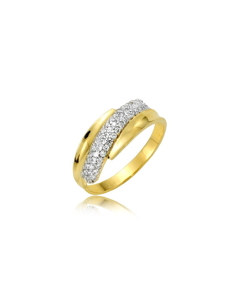 Fascynujący złoty pierścionek w niezwykły sposób zdobiony cyrkoniami.