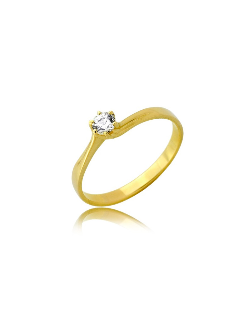 Klasyczny złoty pierścionek z pięknie osadzoną cyrkonią.