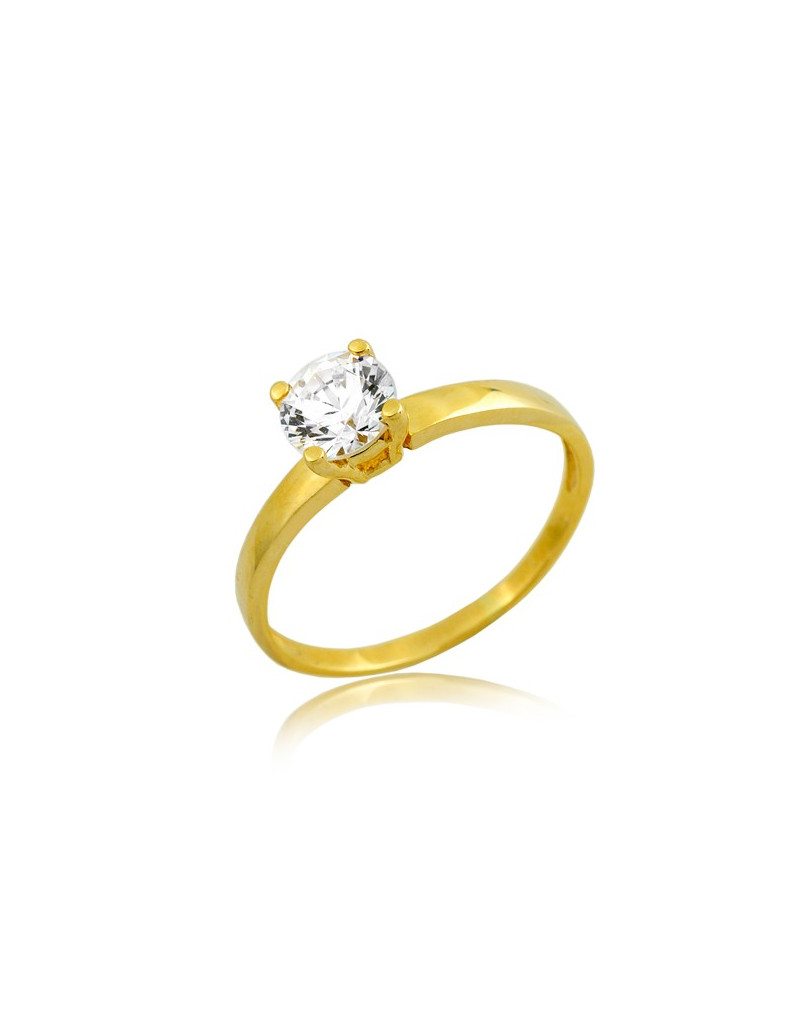 Klasyczny złoty pierścionek zdobiony dużą cyrkonią.
