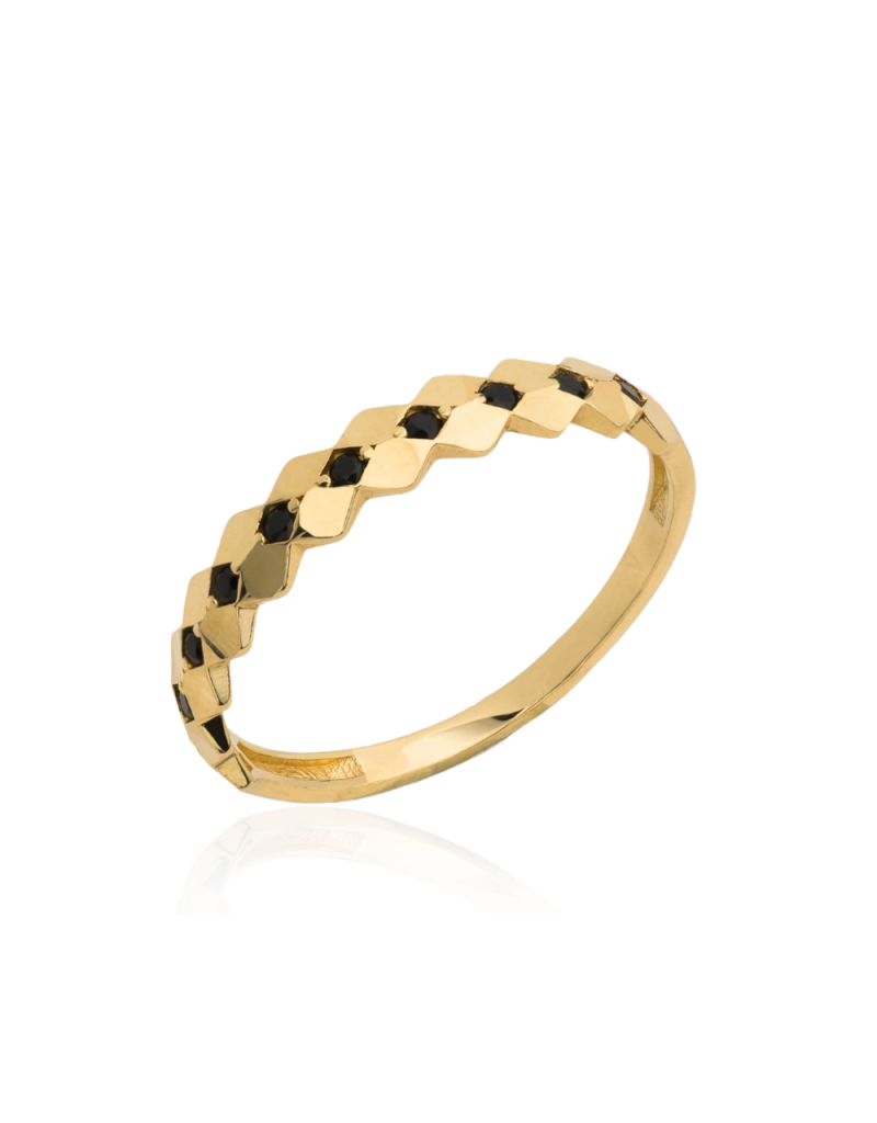 Pierścionek złoty czarne kamienie i romby (Rozmiar:10 pr. 585 Gramatura: 1.30)
